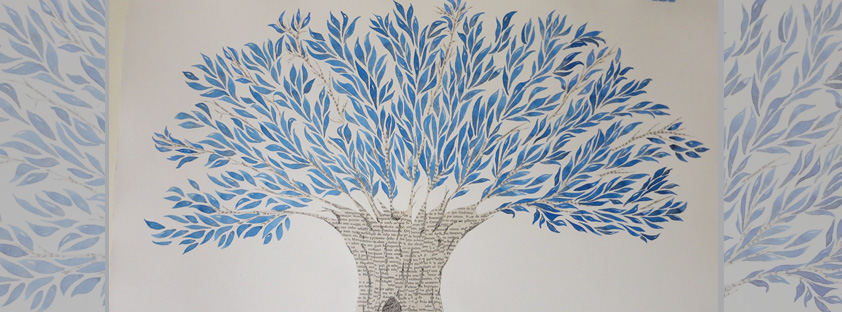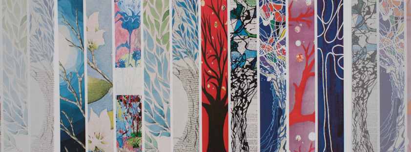 Der Baum ist ein Symbol des Lebens, des Schutzes und der persönlichen Entwicklung. Papier, welches aus ihm entsteht, verbirgt zahlreiche Geschichten, die darauf warten, erzählt zu werden.Daraus entstanden unterschiedliche Bilder, zum Einen einfach und klar und zum Anderen intensiv und komplex.